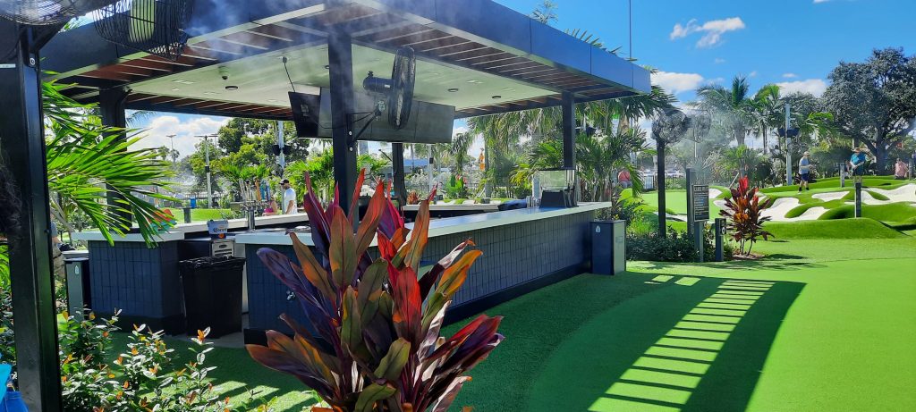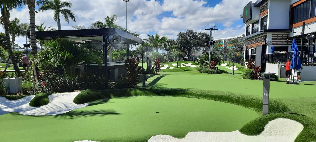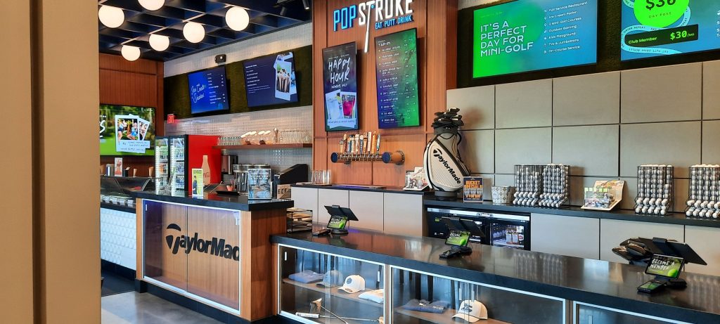 PopStroke is a 36-holes mini golf event venue for birthday parties, anniversaries, corporate events, graduation parties, or anyone who just want to have an awesome time. Premium food and drinks, restaurant on first floor, ice cream parlor, cornhole games, playground for the children. VIP lounge with swimming pool, bar and cabanas on second level.
